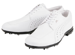 実はJL classicというゴルフシューズとは思えない靴を発見している。プーマとJLというメーカーがコラボレーションして作った靴ですわ。スポタカで履いてみたんですけど、見た目ほど硬い靴じゃなくて、ゴルフぐらいは余裕で出来る(出来なきゃこまるんだけど)。見れば見るほど、