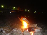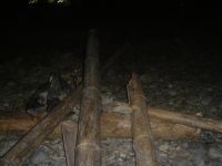 目がちょっと慣れてきたとはいえ、よく見えない。石ばっかりゴロゴロしてて燃えそうな木とかなかなか見つけられん。橋の下が街頭で明るいから、何か見つかるかも。街頭は明るいけど、コントラストの関係で暗いところが逆に見にくい。木…、木…、木…。一人で黙々と探してるのも何なので歌います。